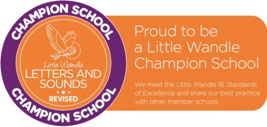 "We are excited to share that we are a Little Wandle Champion School! This means that our school has met 16 Standards of Excellence in the teaching of early reading and phonics.